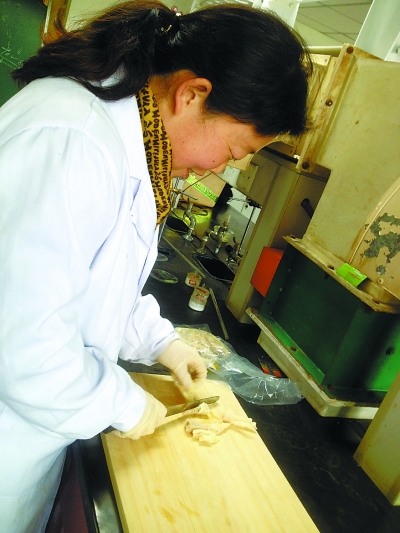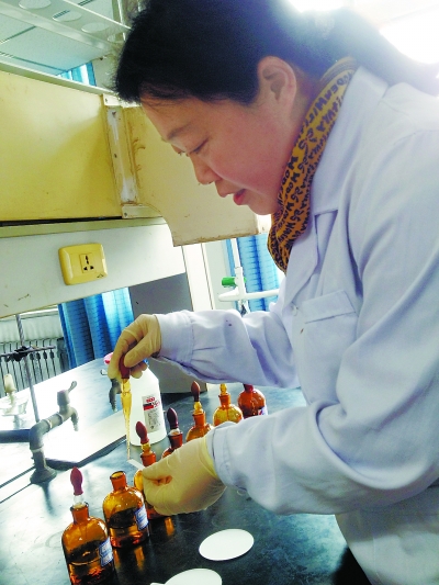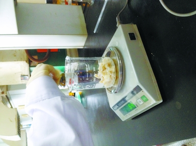 此次实验中检测的泡椒凤爪共有两种,一种是某品牌的产品,包装上印有“食品安全”标志,在超市中购买。这种凤爪呈现出淡淡的黄色。另外一种泡椒凤爪外观呈乳白色,看起来十分干净,是在某自由市场上购买的,包装上没有注明生产日期和厂家。对于这种情况,卖凤爪的商贩称,这是“专供机关食堂的,绝对安全”。