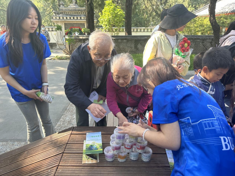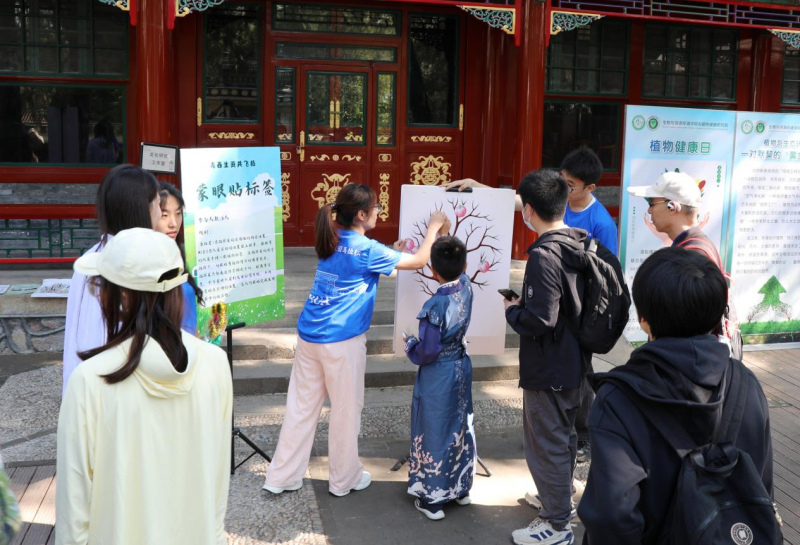 当天,活动在颐和园养云轩开放“古典园林生态”工作室和“古树”工作室,还设立了植物健康、古树保护、智慧植保等科普宣传展板,陈列出形态各异的植物病虫害标本、古树年轮标本。这些标本直观展现了病害对植物的侵蚀过程,引发游客对植物健康危机的深刻思考。世俱杯sjb官网师生制作的图文并茂的科普展板,从常见病虫害的识别技巧到绿色防控的前沿技术,专业讲解深入浅出,让植物科学知识变得通俗易懂。往来游客纷纷驻足,不时向师生提问。尤其是师生志愿服务队现场发放精心编制的《家庭绿植养护小贴士》,并针对盆栽枯萎、月季黑斑病等常见问题提供一对一解答,深受市民欢迎。