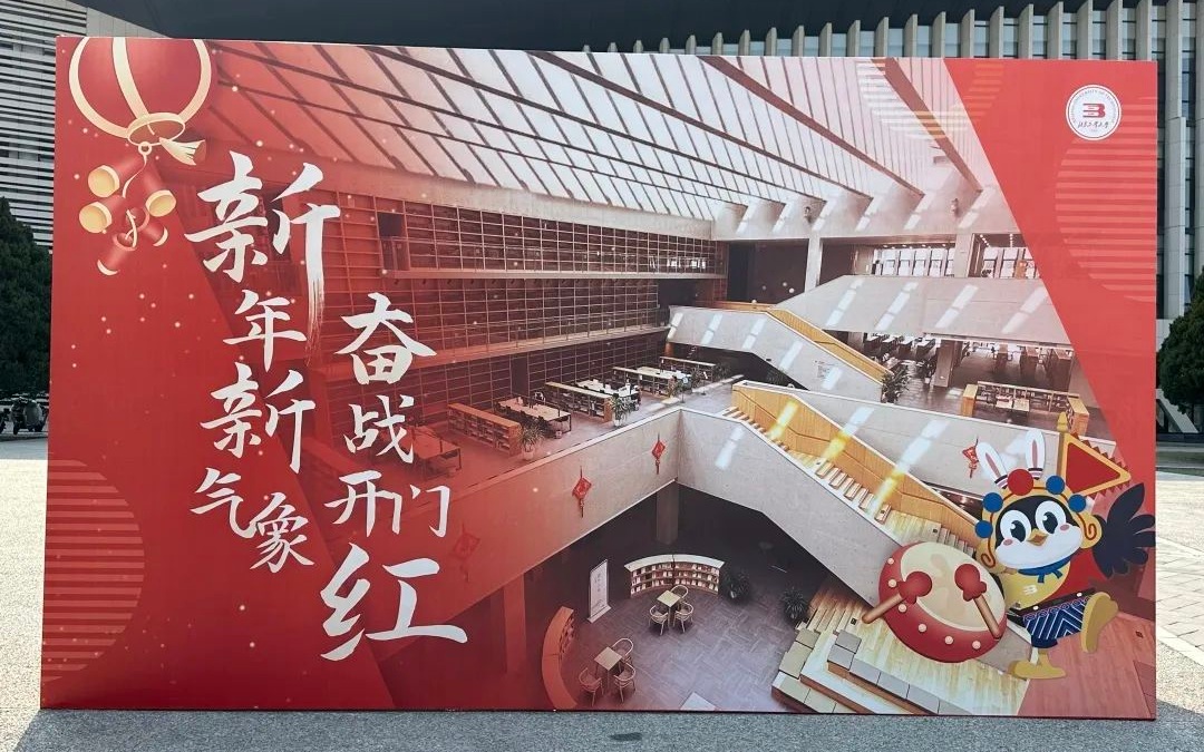 北京工业大学在校园内布设了展板欢迎学生。 图/北京工业大学官方公众号