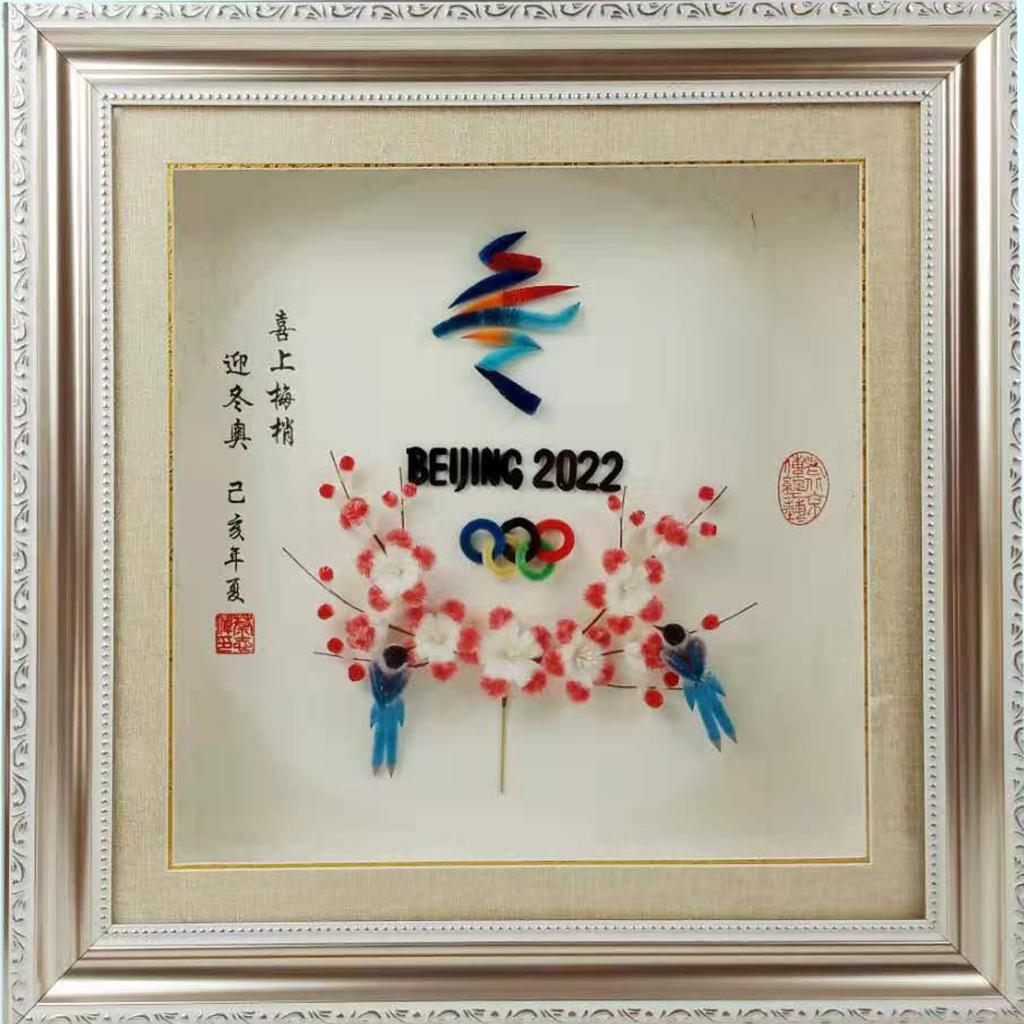 北京绒花历史悠久,蔡志伟制作绒花已经20余年,双手留下来厚厚的茧子,被他戏称为“荣誉徽章”。北京冬奥会开幕前,他做了一幅名为《喜上眉梢》的绒鸟(绒花)作品,这幅画饱含了他对冬奥的祝福,希望中国运动员在冬奥会上取得优异的成绩。
