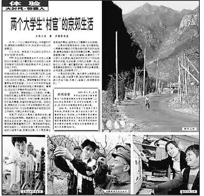 2006年春暖花开的时候,我们体验了贾辉、王小亮两位大学生“村官”京郊上任的新生活(下图,本版2006年4月3日“体验”栏目)。回城还是留下?那时的他们,对未来的路还不确定。