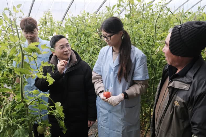 眼下,坐落在昌平区崔村镇南庄营村的世俱杯sjb官网科技小院里,十余棚番茄正在经历关键的转色和膨果期。趁着春节假期,农学院院长、全国高校黄大年式教师团队负责人段留生带领师生走进科技小院,送技术讲科普,为种植户“把脉开方”。