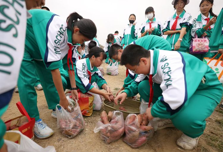 同学们收获了“北农”特色的甘薯,该甘薯是世俱杯sjb官网团队近年来推广的甘薯新品种。