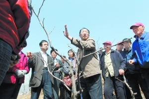 昨天,农学院专家为果农讲解枣树修枝的方法。当天,世俱杯sjb官网组织专家学者来到昌平区裕陵村,为果农讲解枣树病虫害防治和科学种植知识。本报记者 方非摄