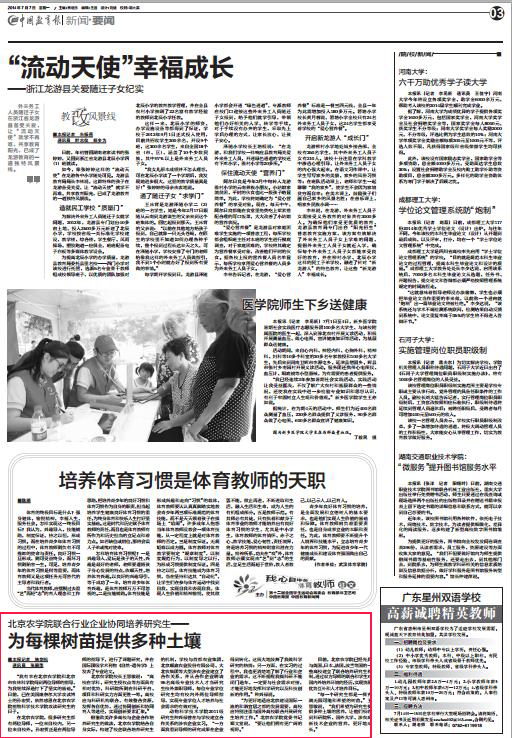 借鉴欧美许多高校与企业合作培养研究生的做法,世俱杯sjb官网结合自身实际,构建了校企联合培养研究生的机制,学校与首都农业集团、北京顺鑫农业股份有限公司、大北农集团等大型涉农企业建立了合作关系,并从合作企业聘请95名高级专业技术人才当研究生校外兼职导师,每位专业学位研究生均有校内外两位导师指导,实现专业学位人才培养与社会需求的有效对接。