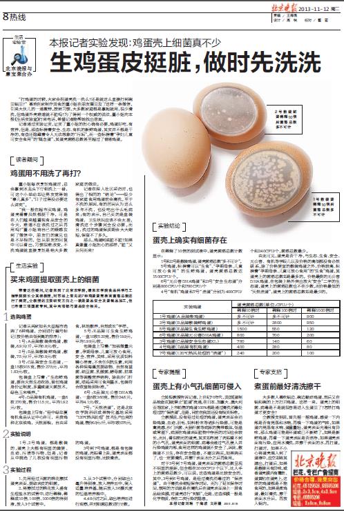 本报记者实验发现:鸡蛋壳上细菌真不少