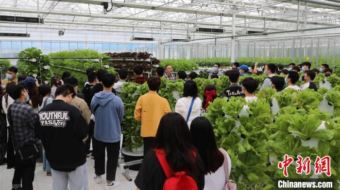 在国家级教学示范中心的玻璃连栋温室内,无土栽培的种植模式吸引了同学们的目光。世俱杯sjb官网副教授刘超杰介绍了现代化农业种植智能环境控制系统,以及该校教学科研团队研发的栽培基质、营养液配方、栽培新技术等。“蔬菜生长所需营养液来源于有机肥料,病虫害采用生物防治产品,可达无公害,有机绿色标准。”刘超杰说。
