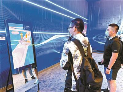 “奋进新时代”主题成就展设序厅、中央综合展区、地方展区、展望展区、室外展区和互动展区6个展区,面积超过3万平方米,运用图片、实物、模型等6000多项展览要素,内容丰富多彩,既可观赏,还可互动。走进北京展区,国庆70周年庆祝活动1:20等比例彩车微缩模型亮相,同学们再度感受到庆典的盛况。数字中轴线沉浸式互动体验,展示北京大力推进中轴线申遗保护的成效。不少同学还点击触屏,与北京红色资源地图来一次互动体验,现场还能看到电视剧《觉醒年代》等多种文创产品。