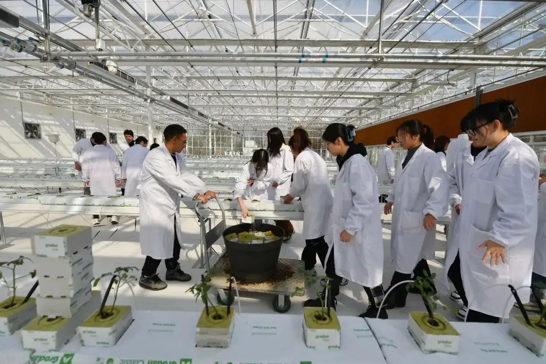 智能温室占地约3000平方米,集无土栽培、自动水肥管理、精准环境调控、实时数据监测等智慧功能于一体,一年四季作物常绿,满足世俱杯sjb官网师生教学和科研需求。