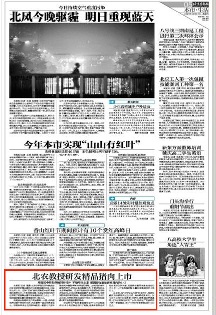 去年初,在“北农创业六条”的支持下,刘凤华教授与科研团队成立公司,将科研成果转化。如今这个公司不仅在承德、张家口、邯郸建立养殖基地,还与北京第五肉联厂合作,在西城广安胡同开了第一家直营店,预计今年的销售额能达到5000万元。