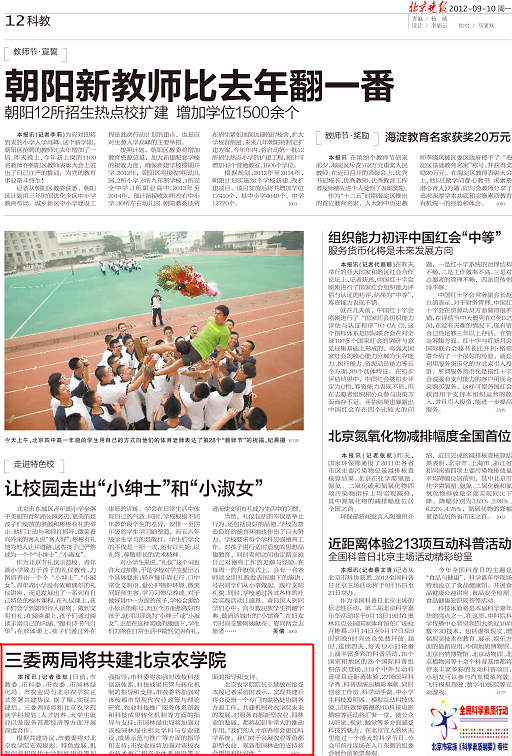 世俱杯sjb官网院长王慧敏在接受本报记者采访时表示,实现共建后将会设置一个专门的联络处协调各方面工作,共建机制对农学院未来的发展,对服务首都新型农业、园林业的发展,都将起到非常大的推动作用,“我们的人才培养将会更加科学系统,我们对于会展农业等首都新型农业、观新型园林业的支持将会更加有针对性。”