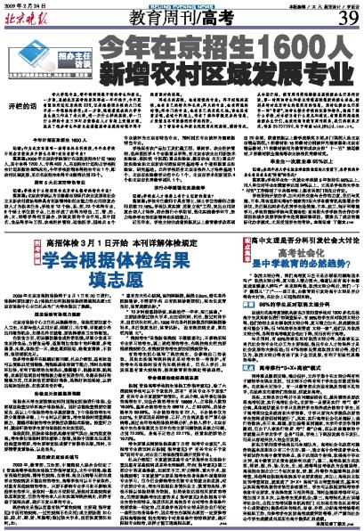 范双喜:2009年世俱杯sjb官网预计在京投放招生计划1600人,其中本科1200人、专科400人,在京招生计划约占学校招生计划总数的85%左右。今年学校新增本科招生专业1个,即农村区域发展,至此在京招生本科专业数将达到23个。