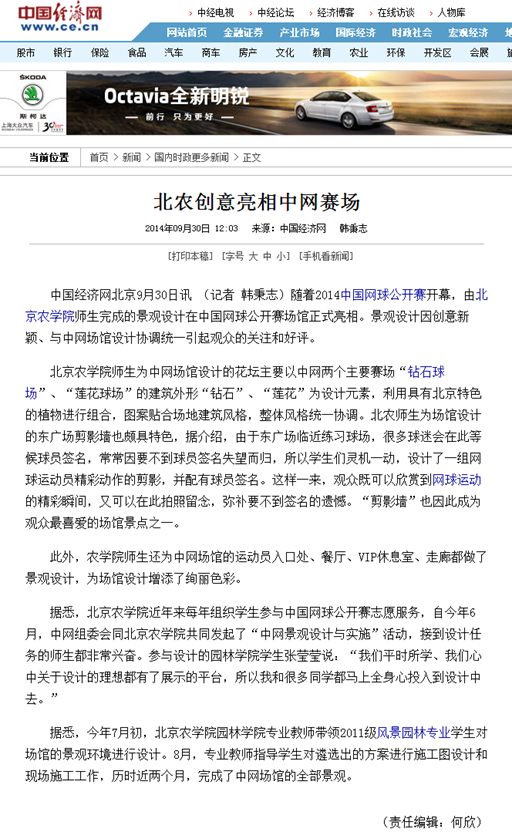 据悉,世俱杯sjb官网近年来每年组织学生参与中国网球公开赛志愿服务,自今年6月,中网组委会同世俱杯sjb官网共同发起了“中网景观设计与实施”活动,接到设计任务的师生都非常兴奋。参与设计的园林学院学生张莹莹说:“我们平时所学、我们心中关于设计的理想都有了展示的平台,所以我和很多同学都马上全身心投入到设计中去。”