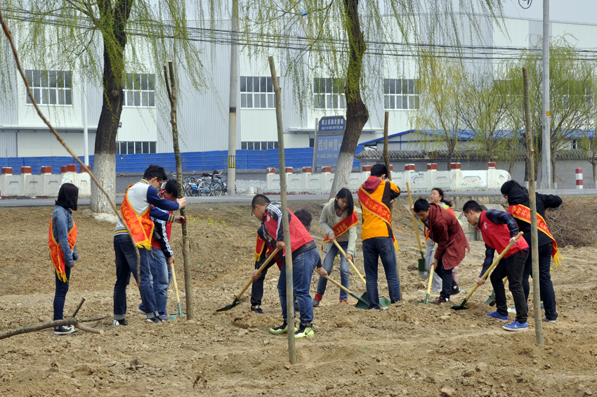 两校同学合力植树