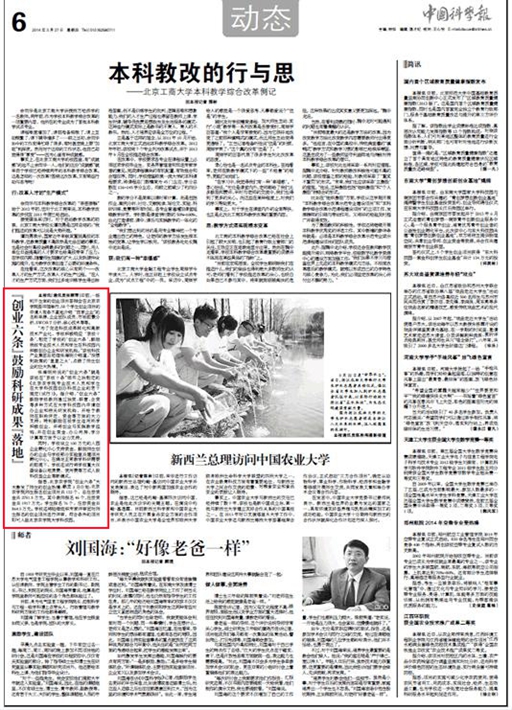 张海明所说的“创业六条”就是该校在“京校十条”颁布之后制定的《世俱杯sjb官网专业技术人员和学生在大学科技园创办科技企业的若干规定(试行)》。据介绍,“创业六条”鼓励学校教师通过独资、联营、合资等多种方式在大学科技园内申请创办企业和相关研发机构,并给予教师在职称评定、资金等方面的大力支持;特别鼓励在校学生运用所学积极创业,并将创业与实践教学挂钩,并在创业资金、办公用房、学分计算等方面予以全力支持。