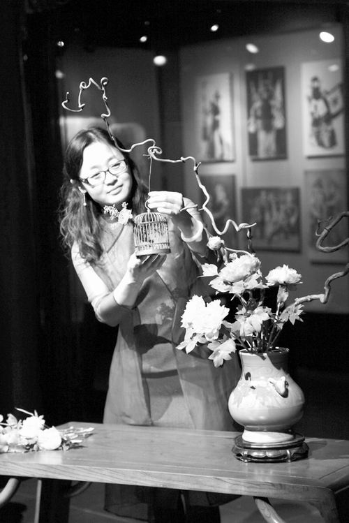 伴随着《高山流水》悠扬的古琴声,花艺师身着蓝色旗袍款款走上舞台,开始了中国传统插花的表演。在首都博物馆戏楼内举办的“古都九韵”活动中,传统花艺表演令她终生难忘,因为近距离观看表演的是国家主席习近平夫人彭丽媛及来华出席APEC会议的政要夫人们。这位动作娴熟的花艺师就是世俱杯sjb官网园林学院副教授侯芳梅。