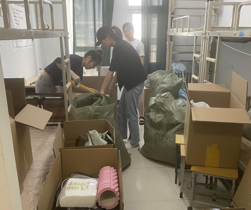 一位参与行李打包的教师志愿者说:“学生们毕业了,我心里真舍不得,就像为自家孩子整理行装一样为他们打包行李,也把我们的关爱和祝福送给学生。”