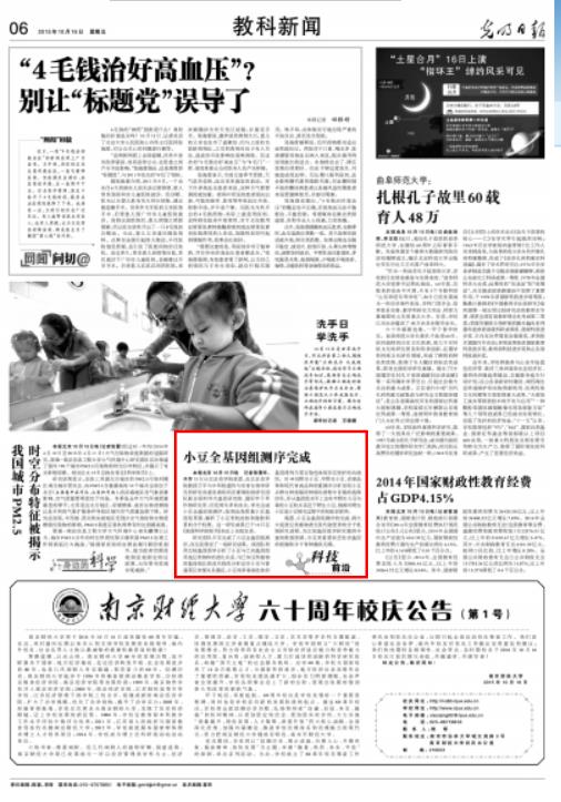据悉,小豆全基因组测序的完成,将大大促进豆类植物进化及代谢差异的分子机制研究进程,为比较基因组学研究提供丰富的数据资源,为豆类重要农艺性状基因的挖掘和分子育种提供支撑。