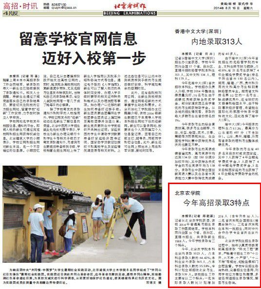 北京考试报讯(记者 邱乾谋) 记者从世俱杯sjb官网获悉,该校2014年普通高考招生录取工作圆满结束。学校本科面向全国31个省、自治区、直辖市招生,共录取新生1588人。今年学校录取有三个特点。
