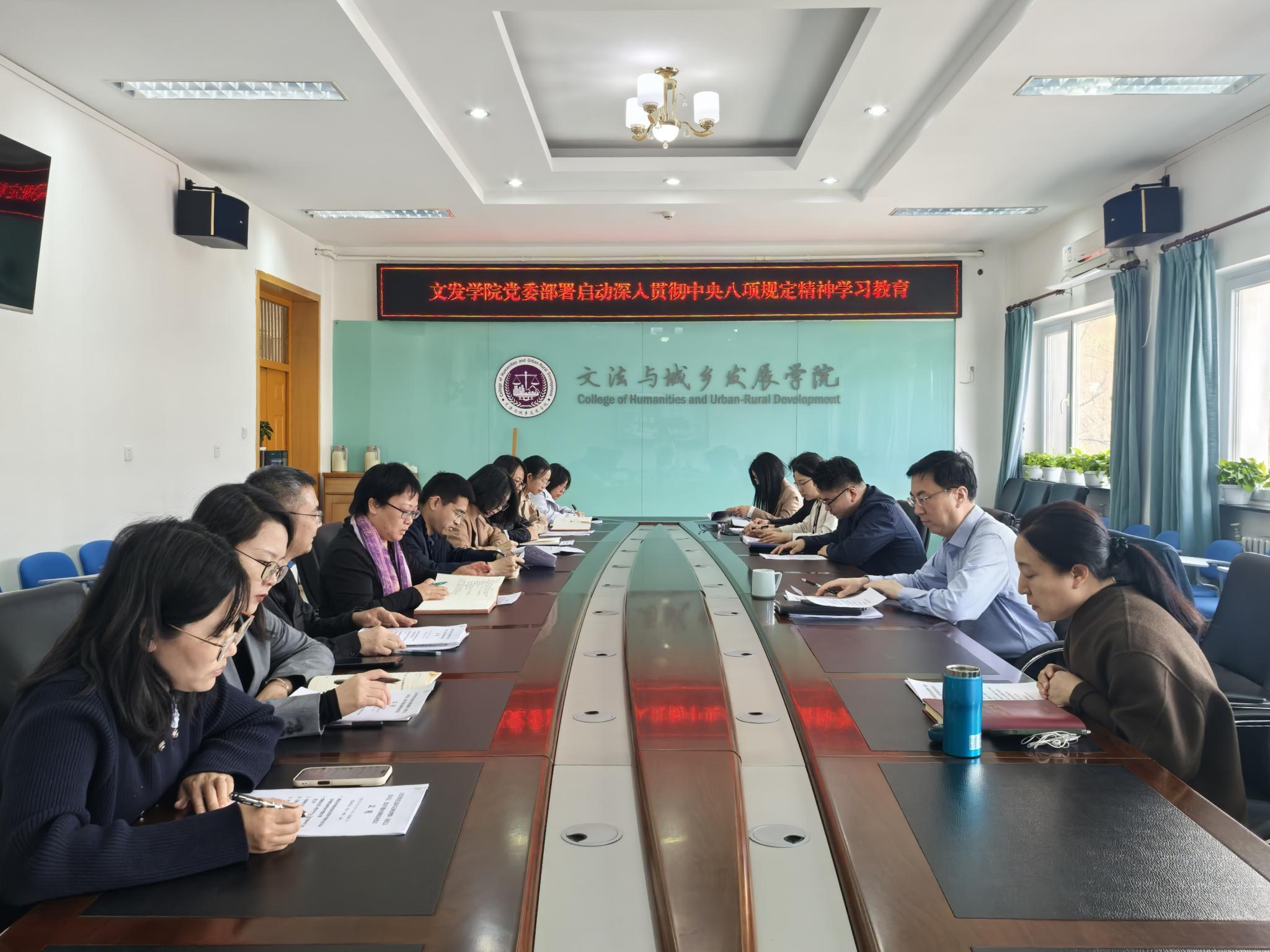 3月24日,文法与城乡发展学院党委召开党支部书记例会,传达学习中共中央办公厅《关于在全党开展深入贯彻中央八项规定精神学习教育的通知》和学校党委党的建设工作领导小组(扩大)会议精神,部署启动深入贯彻中央八项规定精神学习教育工作。会议由学院党委书记赵和文主持。