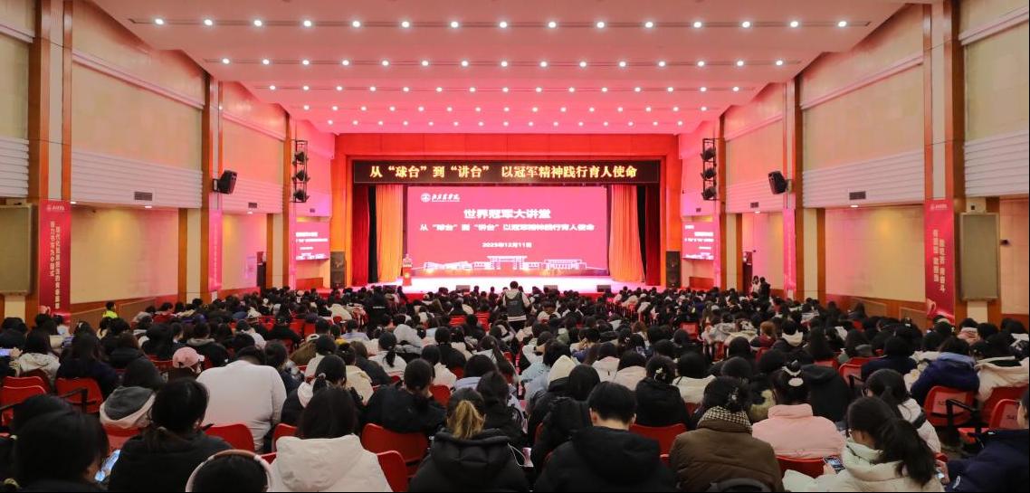 12月11日,学校举办“世界冠军大讲堂”,邀请乒乓球世界冠军、北京大学刘伟教授作报告。校党委常委、副院长曹志军出席活动并致辞。