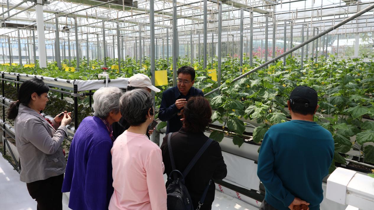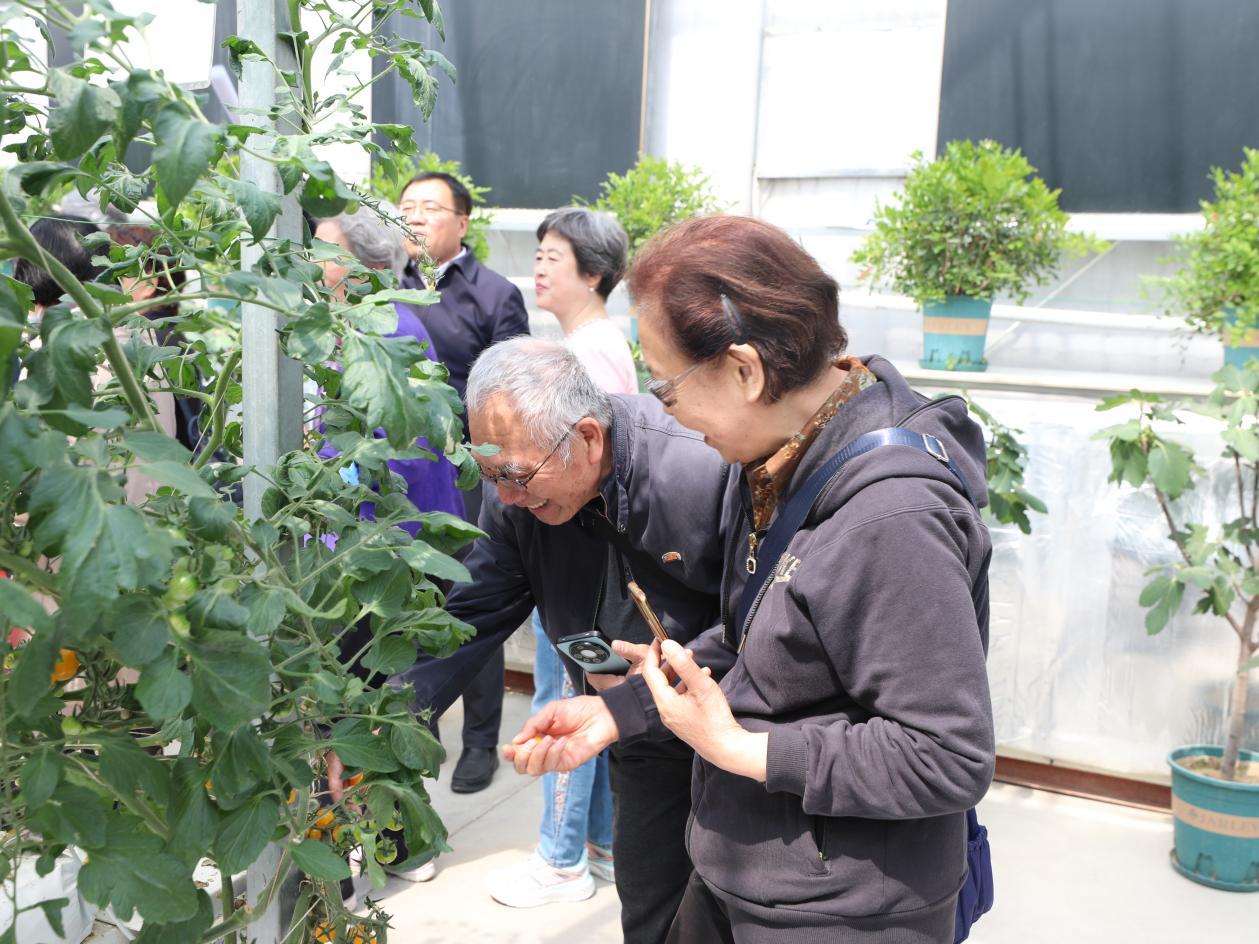 在学校植物生产国家级实验教学示范中心,老同志们现场参观了智能连栋温室,了解学校实践教学做法、劳动教育特色和师生服务乡村振兴的成效。