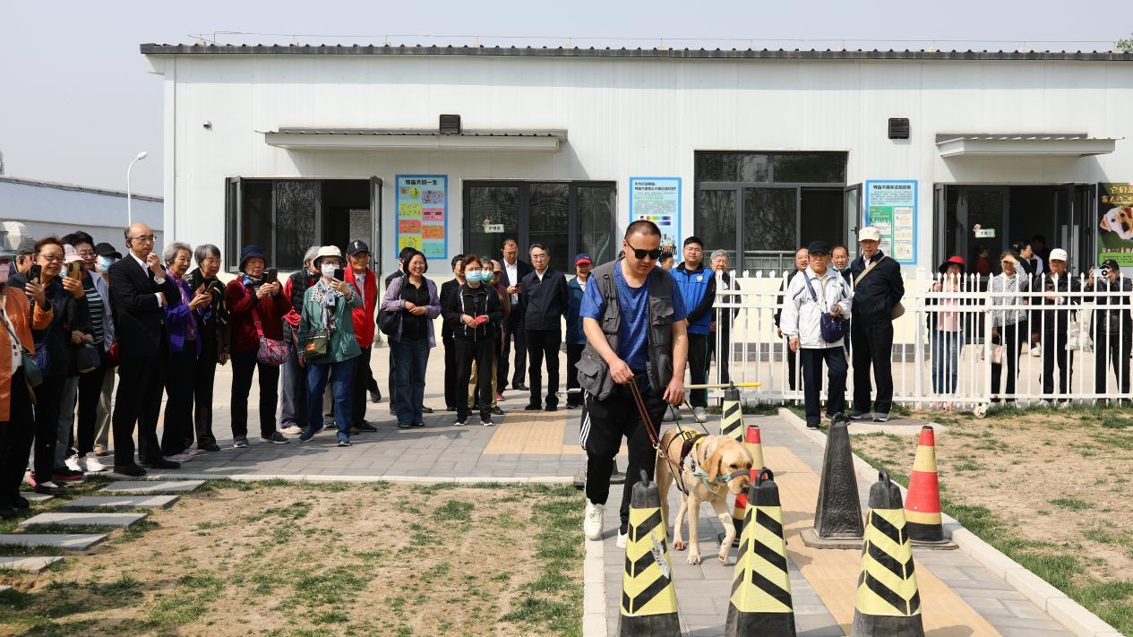 在北京市导盲犬培训示范中心,老同志们参观了解了北京市导盲犬培训基地的建设进展与运行情况,察看了犬舍、中兽医诊疗室、诊断处置室以及训练场等,现场观摩了导盲犬训练演示,对基地在提升视障群体生活品质、服务首都残疾人事业高质量发展的做法和进展给予充分肯定。