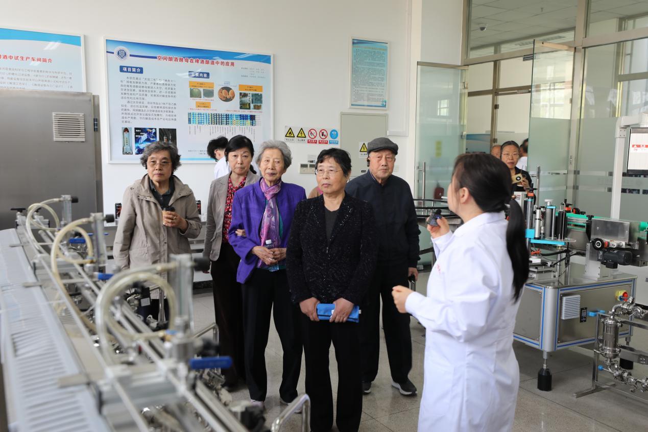 在学校食品加工与食品安全北京市实验教学示范中心,老同志们现场观摩了酿酒工程实验室、葡萄酒中试车间以及贮藏保鲜推广车间,详细了解了学校在食品科学与工程领域的人才培养模式、专业建设特色及科研成果转化情况。