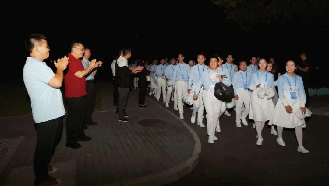 作为多次参加重大活动的“老兵”,梁燕深知细节决定成败,为了让大家呈现出最好的状态。她带领团队制定了最严格的训练计划。114个日夜,每周不少于6次的训练,累计超过200小时的汗水……夏日的骄阳晒黑了皮肤,却晒不退大家的热情。