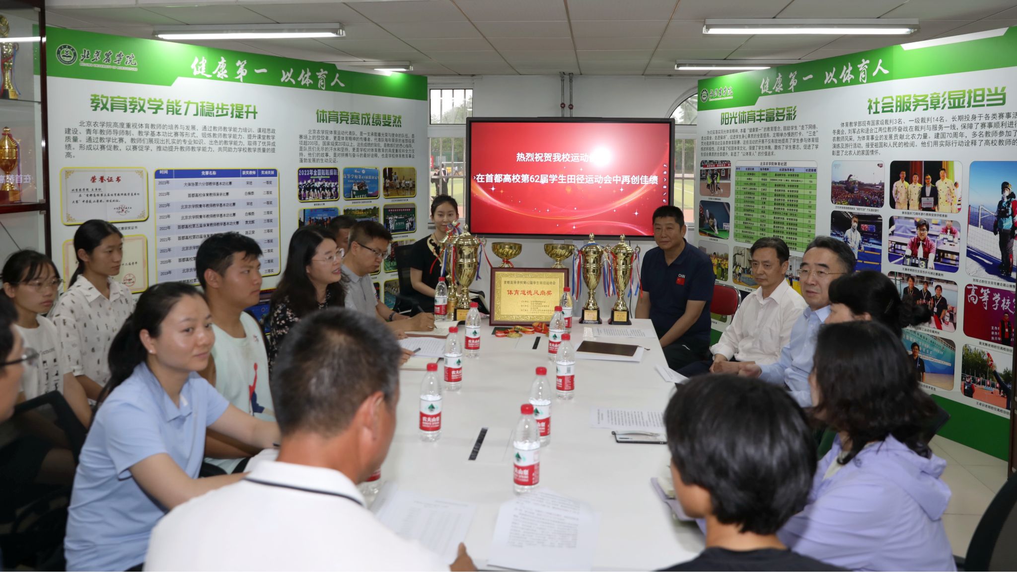 为进一步落实立德树人根本任务,增强体育育人实效,5月23日下午,学校党委书记赵锋,党委常委、副院长武艳和相关部门负责人,到学校体育教学部看望慰问世俱杯近日在首都高校第62届学生田径运动会上取得优异成绩的运动健儿和教练员,听取学校体育育人工作情况汇报,与师生代表进行座谈交流。