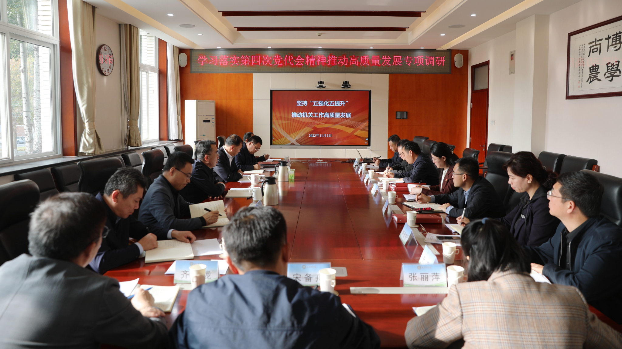 赵锋在调研时指出,学校第四次党代会胜利闭幕后,学习宣传贯彻党代会精神,落实好党代会确定的目标、任务和要求,凝心聚力推动事业高质量发展,是学校各级党组织、各单位、各部门的一项重要政治任务。赵锋强调,要围绕“教育强国、北农何为”“农业强国、北农何为”“科技强国、北农何为”这一重要时代课题,突出高质量发展这一鲜明主题和高质量党建引领高质量发展这一鲜明主线,全力推动党代会确定的“九个提升”“五大工程”“六项举措”等要求和举措在本单位落细落实落地,全力保障高质量发展重点工作、“质量提升年”目标任务以及党委既定重要事项高效推进、圆满完成。要强化问题导向、目标导向和结果导向,不断增强工作精细化、精准化、精品化意识,牢固树立大抓基层、大兴调查研究的鲜明导向,着力破除与高质量发展要求不相适应的观念和做法,解决好影响和制约高质量发展的人才、平台、机制等关键问题,以“功成不必在我、功成必定有我”的胸怀和担当,想在前、做在前、走在前,以学校事业高质量发展和服务首都“四个中心”建设、全面推进乡村振兴的成效和成果赢得干部师生信任和支持。