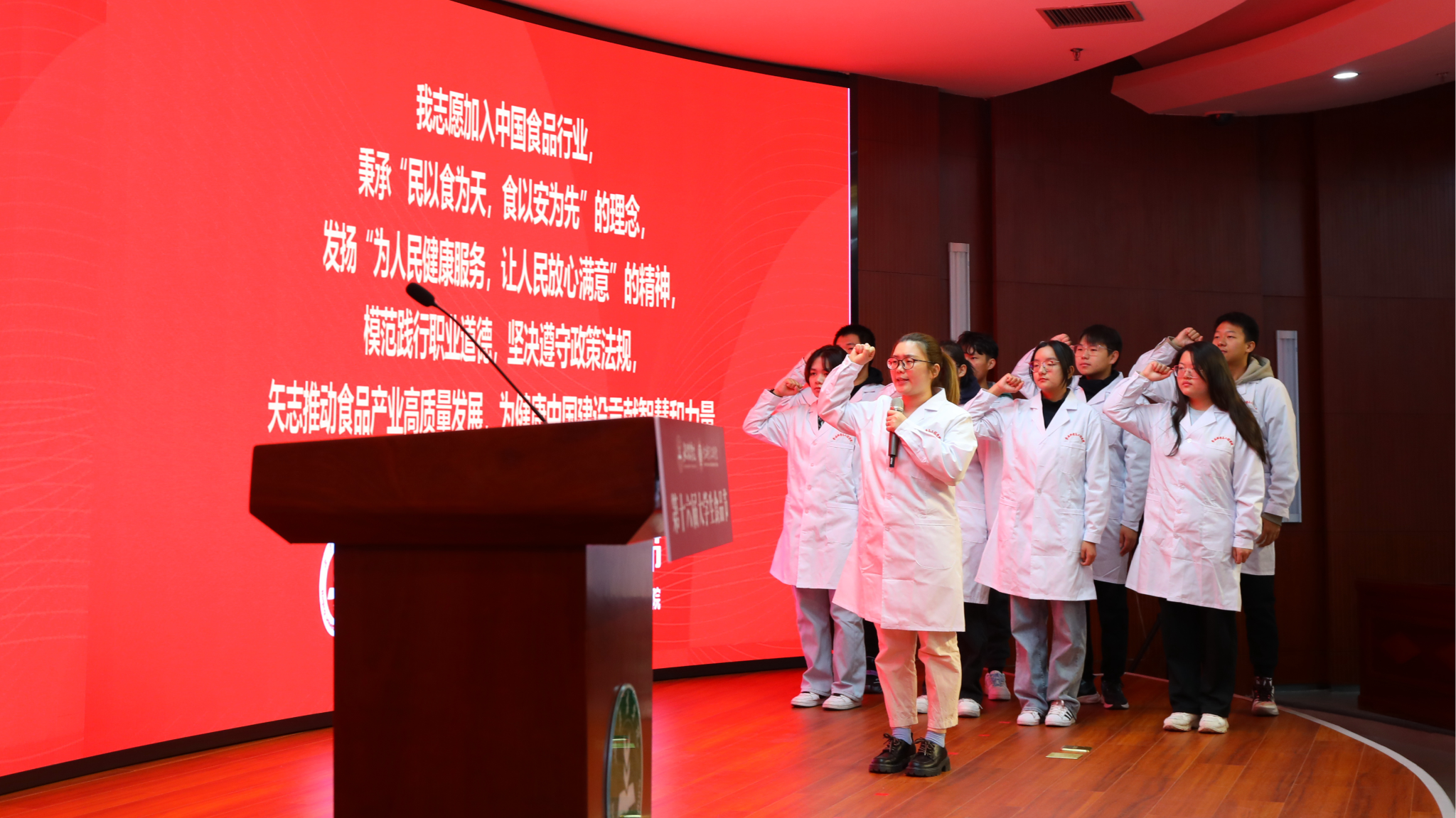 食品科学与工程学院160余名2023级本科生进行了入行宣誓,同学们将秉承“民以食为天,食以安为先”的理念,模范践行职业道德,坚决遵守政策法规,矢志推动食品产业高质量发展,为健康中国建设贡献智慧和力量。