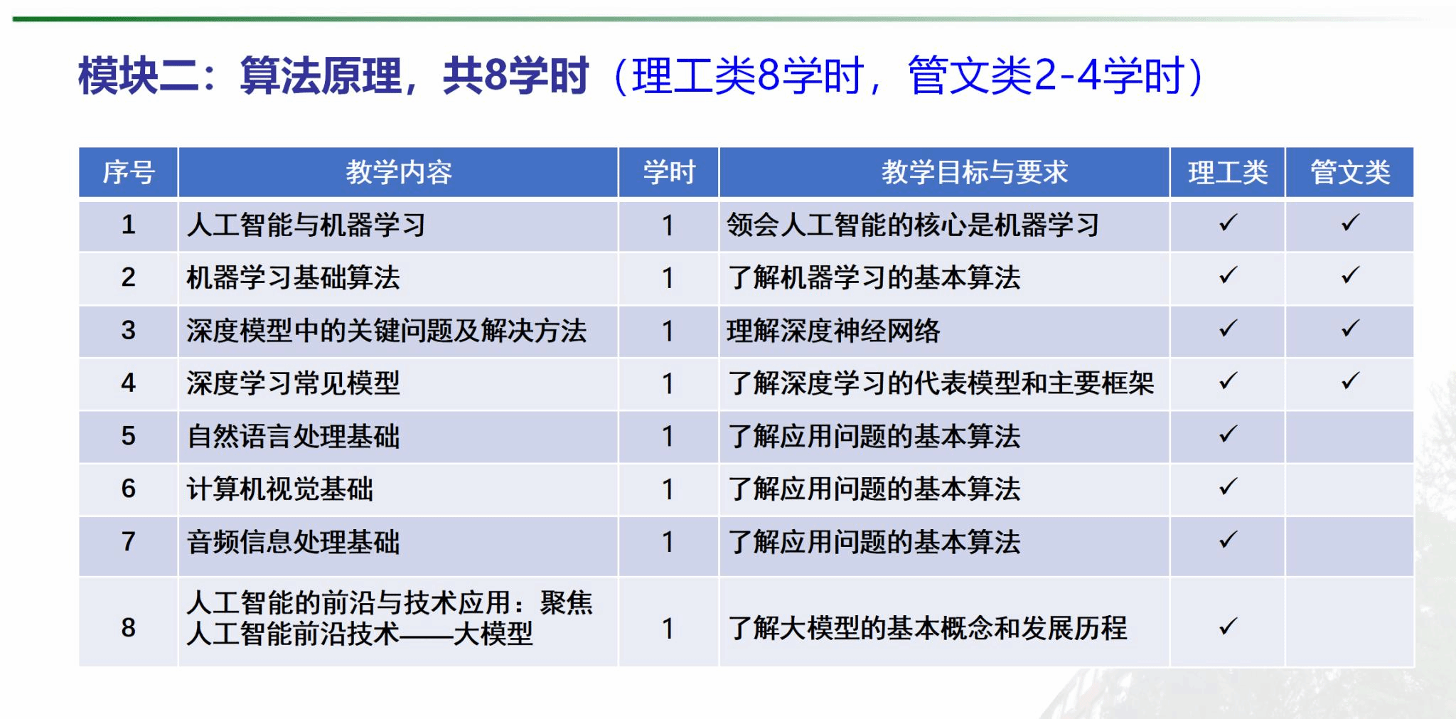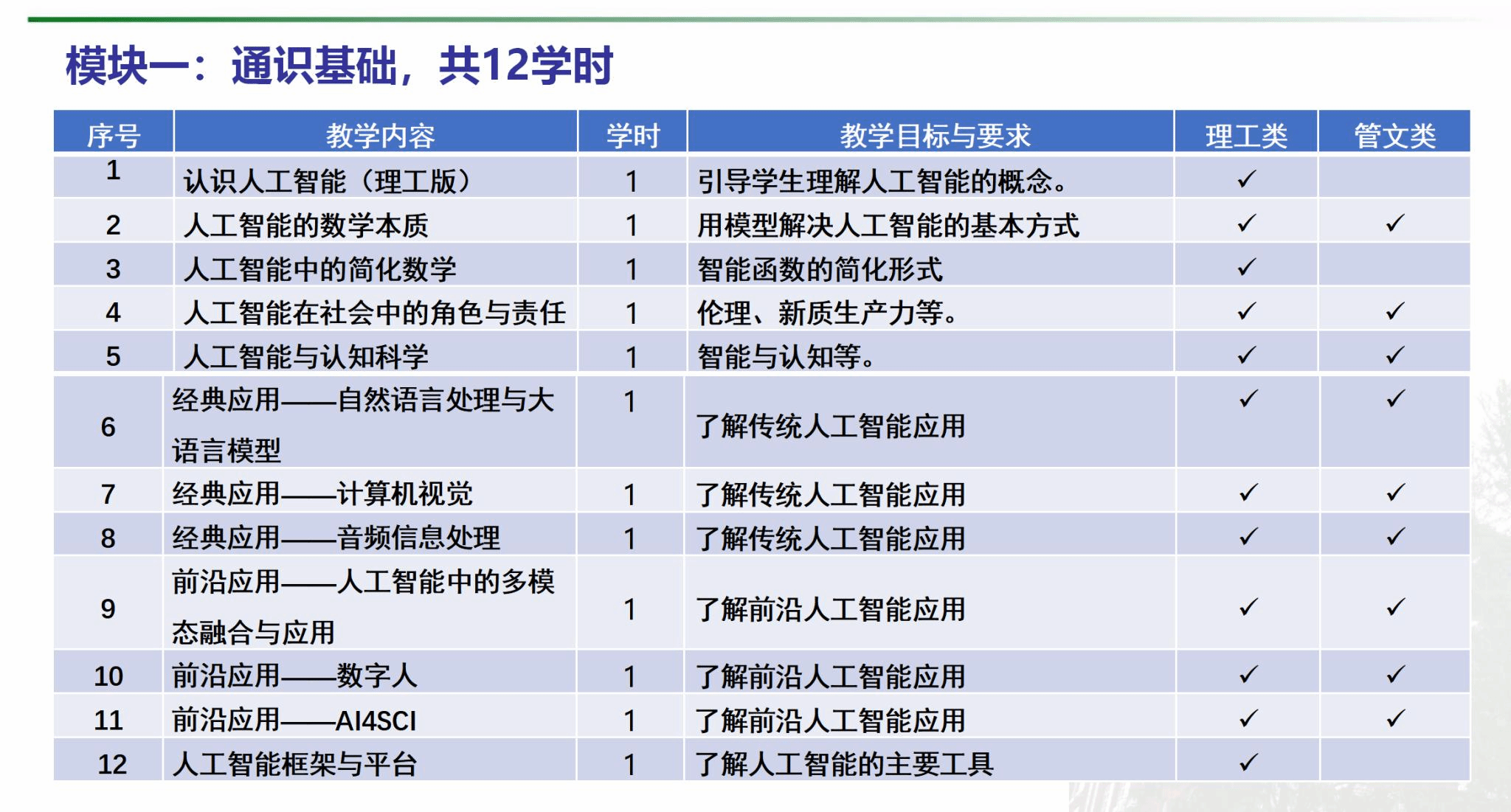 据邱权介绍,人工智能导论通识课总课时均为32学时,但理工类与管文类在理论和实验的课时分配上各有侧重。理工类理论课28学时,实验课4学时,较多的理论课时可帮助理工科学生深入理解人工智能背后复杂的技术原理与算法逻辑。而管文类理论课24学时,实验课8学时,相对更多的实验课时能让管文类学生在实际操作中体会人工智能在不同场景的应用,更多聚焦人工智能在管理、经济、社会领域的应用及影响。