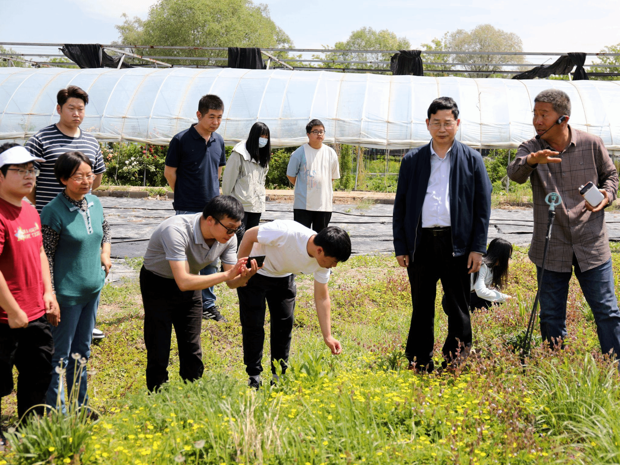 在位于昌平区阳坊镇八口村的教授工作站,段留生带领团队教师开展现场教学并向同学们讲解学校地被植物团队所开展的研究成果——为了更好地满足市场对委陵菜的使用需求,团队专门研发了促进委陵菜分蘖和增强抗逆性的制剂,并帮助种植户改良种植方式,大大提高了种苗品质、缩短了苗子出圃时间,增加了种植户的收入。段留生勉励同学们要深入贯彻落实习近平总书记给中国农业大学科技小院学生重要回信精神,扎实学好专业知识,积极到“三农”一线开展支农扶农实践,以科技赋能乡村振兴。