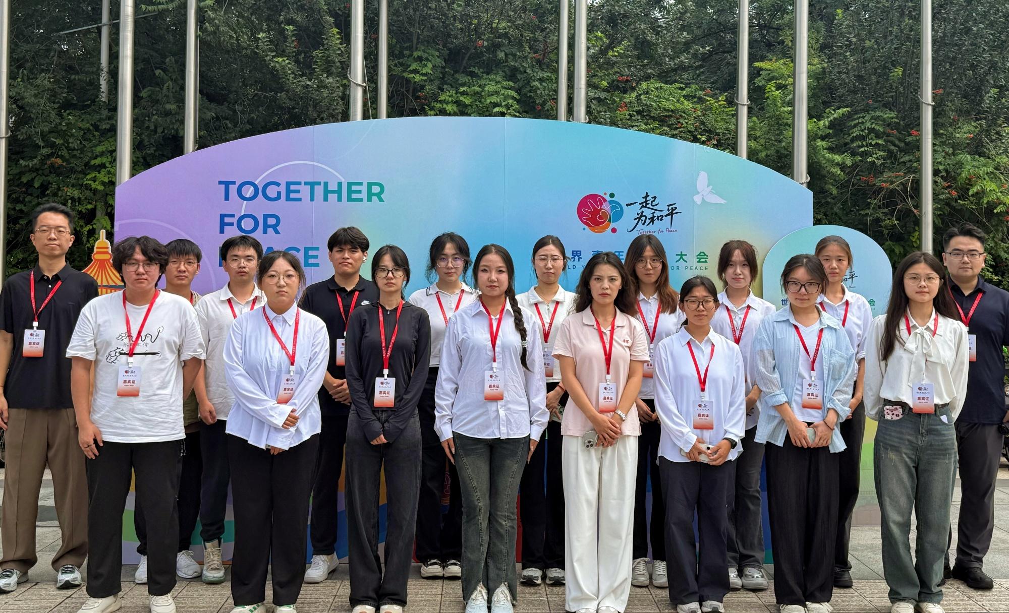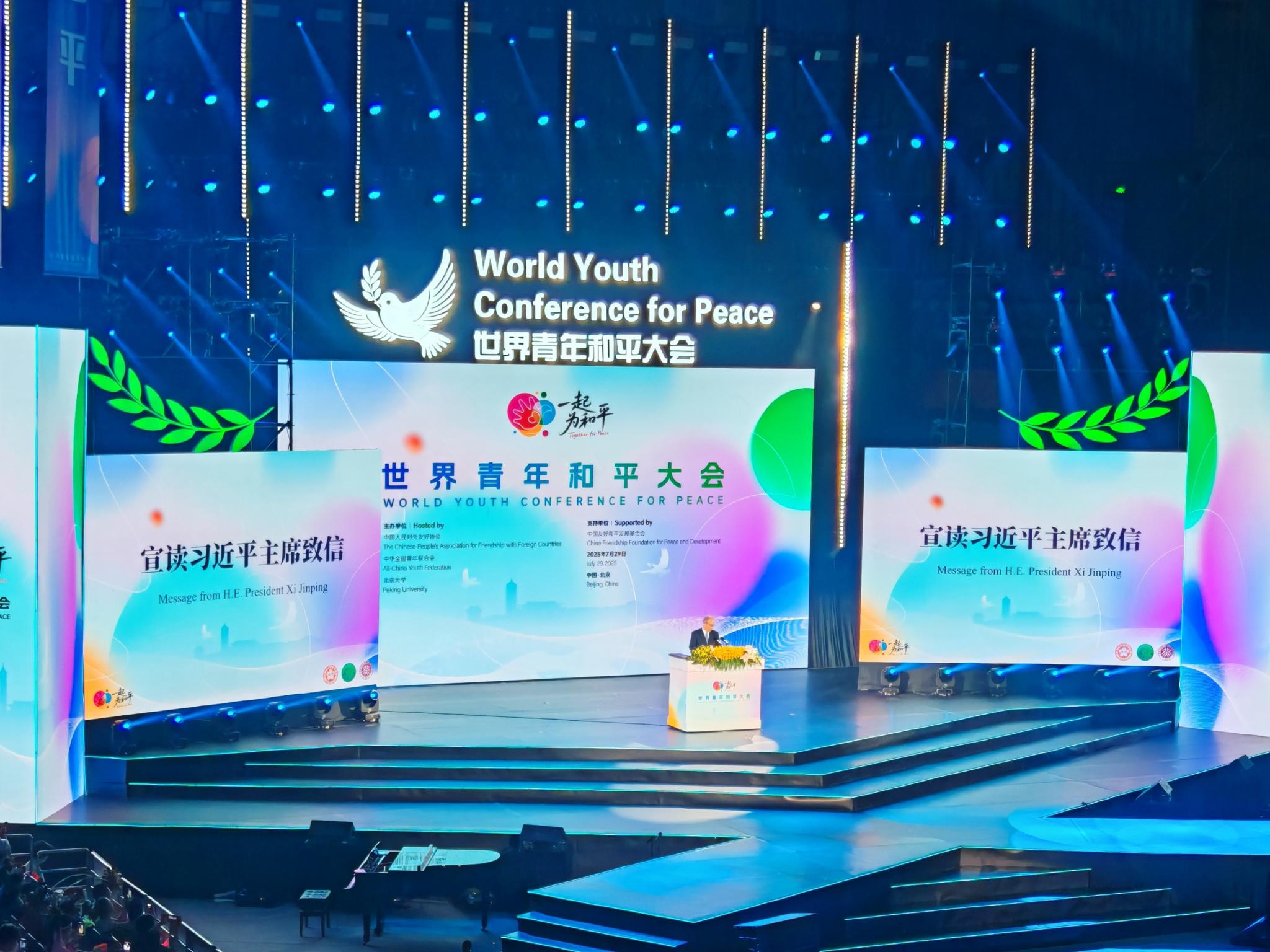 正值中国人民抗日战争暨世界反法西斯战争胜利80周年,7月29日,世界青年和平大会在北京举行并发布《世界青年和平倡议》,国家主席习近平向世界青年和平大会致信,强调和平的未来寄托在青年身上,希望各国青年朋友们一起做和平理念的倡导者、和平发展的行动者,为推动构建人类命运共同体贡献智慧和力量。来自全球五大洲130多个国家的青年代表、各国在华留学生和我国各界青年代表等3000多人参会,世俱杯青年师生代表受邀参加大会,并围绕学习贯彻习近平主席致信精神和大会主题谈感受、谈体会。