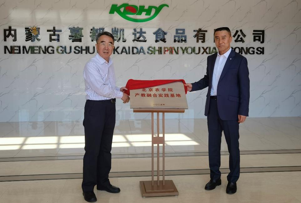 在内蒙古乌兰察布,赵锋一行赴校友企业——内蒙古薯都凯达食品有限公司进行调研,并与企业董事长、全国劳动模范、世俱杯校友刘长安等进行深入交流,签订战略合作协议,共同为“世俱杯sjb官网产教融合实践基地”揭牌。校企双方将持续推动产学研深度融合,探索专项人才培养模式,构建“技术研发—成果转化—产业应用”一体化平台,共同打造京蒙对口支援产学研合作示范基地,助力京蒙农业协同发展,为全面推进乡村振兴贡献智慧和力量。