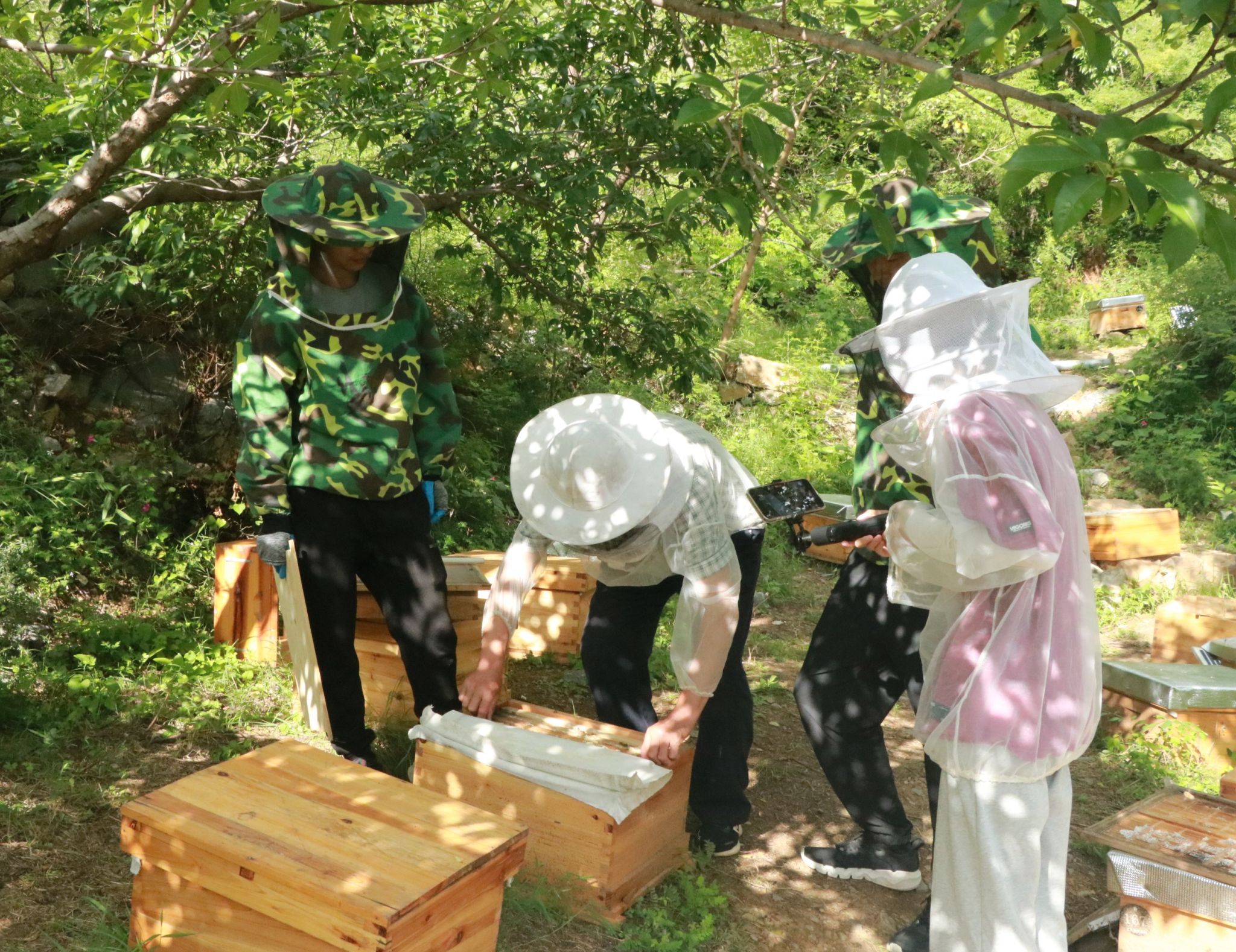 一年来,学校多个科技小院立足京郊农村不同资源禀赋,以培育地方主导产业、特色产业为目标,科技赋能乡村振兴,助力首都农业高质量发展。房山蒲洼科技小院探索出了智慧技术和中华蜂养殖相结合的“智能蜂箱”养殖与管理系统,帮农民改进技术、打开销路,形成“一乡一品”区域特色。平谷刘家店镇寅洞村科技小院开展“文创桃”桃贴材质筛选、创意图案设计、产品市场调研和销售方案策划,成功开发大桃桃贴技术,成品率达到95%以上,获评2023年平谷区优秀科技小院。