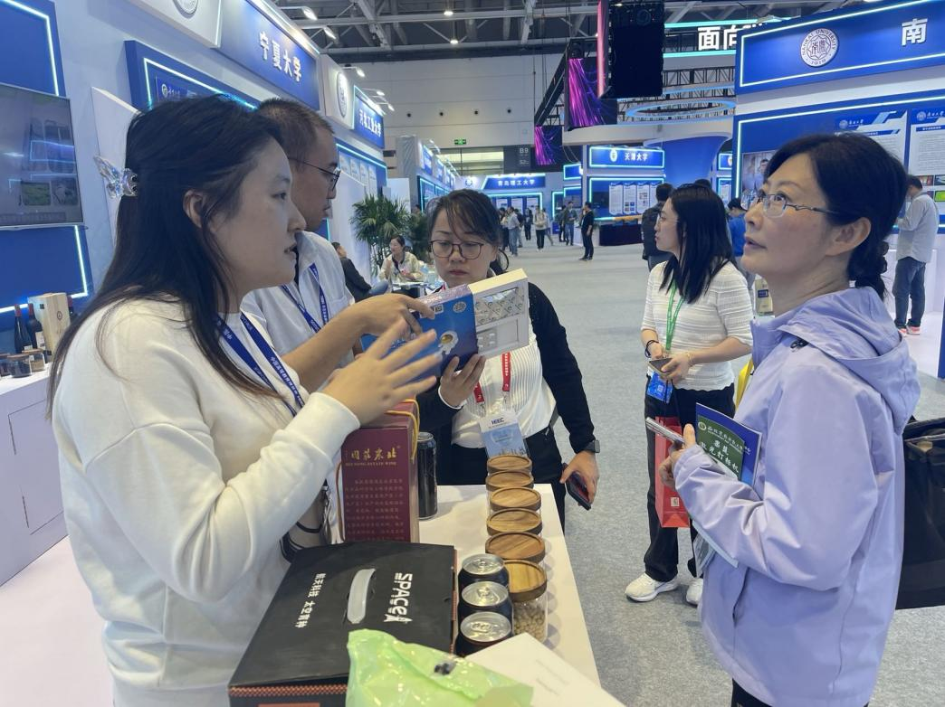 本届高博会聚焦教育强国建设,坚定围绕新时代高等教育责任与使命,以“职普融通,产教融合,科教融汇”为主题,聚焦教育、科技、人才三大模块,集现代教育装备展示、高等学校学术交流、教学改革成果推介等为一体,是展示我国高等教育发展成就的重要窗口。学校在第二届高等学校科技创新大会特色板块展区中的“面向国家重大需求”展区,展示了植物新品种、工农融合应用技术、生物医药技术、食品工程等在战略性新兴产业、重点技术领域具有前瞻性、关键性的科研成果、技术和产品。
