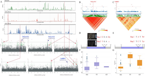 小豆5号染色体在驯化中起重要作用,候选基因VaCycA3;1单个SNP变异与裂荚性状密切相关,候选基因VaHB15中G/T单碱基SNP变异与成熟期相关。