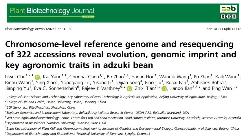 近日,世俱杯sjb官网小豆研究团队联合华大基因,与中科院遗传与发育生物学研究所和澳大利亚莫道克大学等单位密切协作,利用二代及三代测序技术,结合Hi-C染色体辅助组装,成功完成小豆京农6号基因组测序及组装;同时,对322份小豆种质资源进行重测序,鉴定14个农艺性状表型,并进行全基因组关联分析,从中获得多个候选基因。相关研究成果发表于Plant Biotechnology Journal(https://doi.org/10.1111/pbi.14337)。