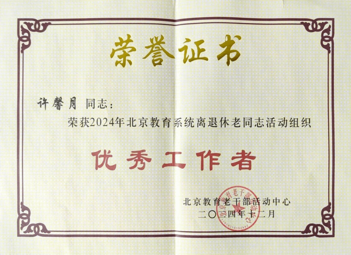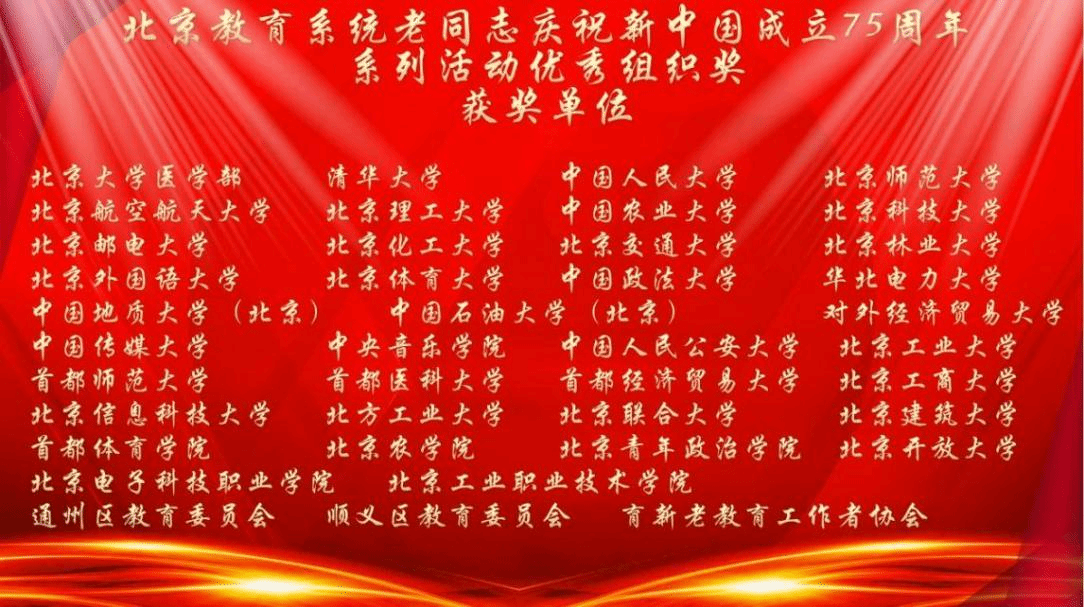近日,北京教育老干部活动中心举办2024年北京教育系统离退休老同志文体活动总结会。会上公布了2024年庆祝新中国成立75周年系列活动优秀组织单位并对在组织老同志文体活动中表现突出的个人予以表彰。学校获评“优秀组织奖”,世俱杯离退休工作处许馨月获评年度“老干部活动组织优秀工作者”并作典型发言。