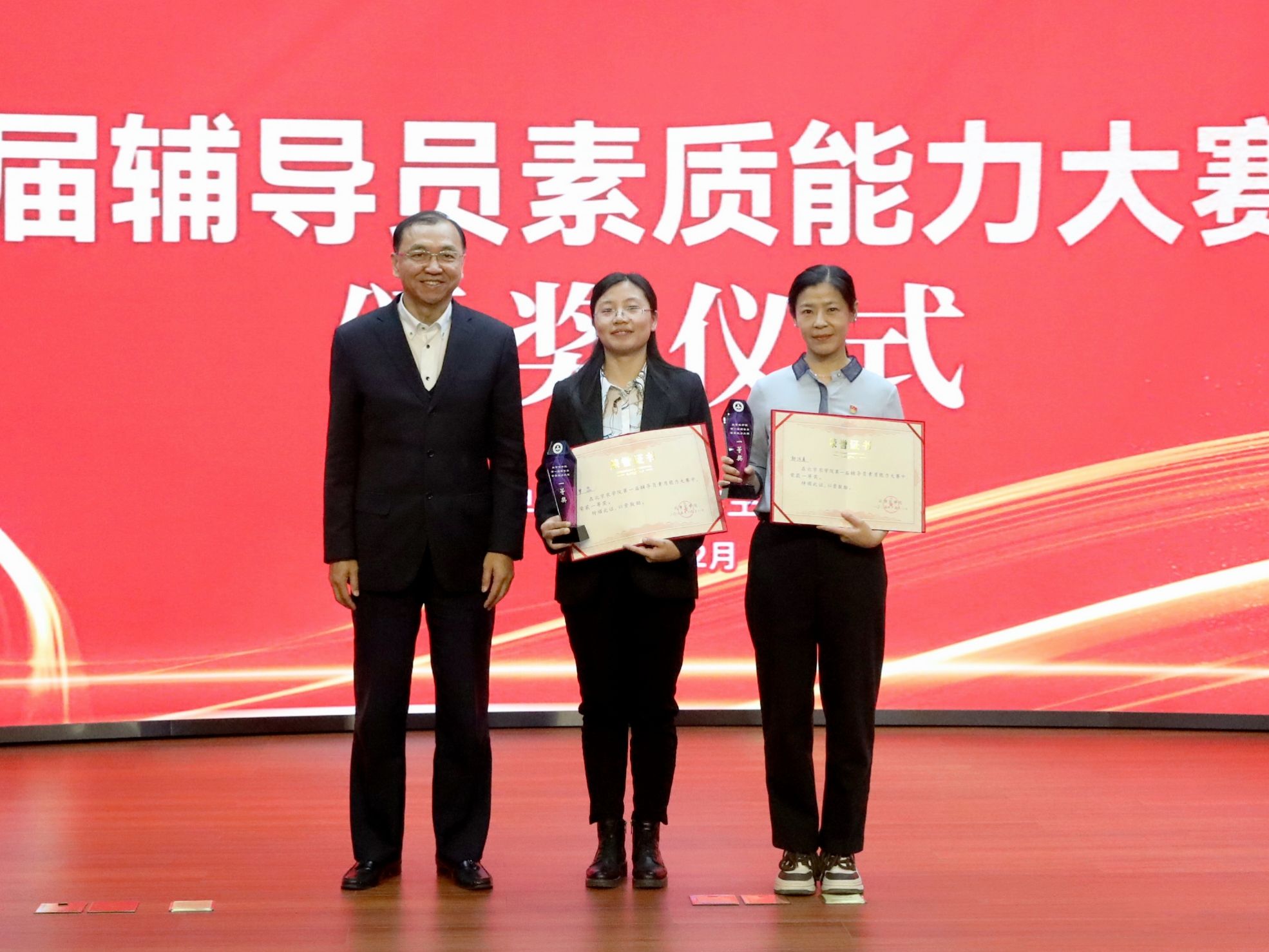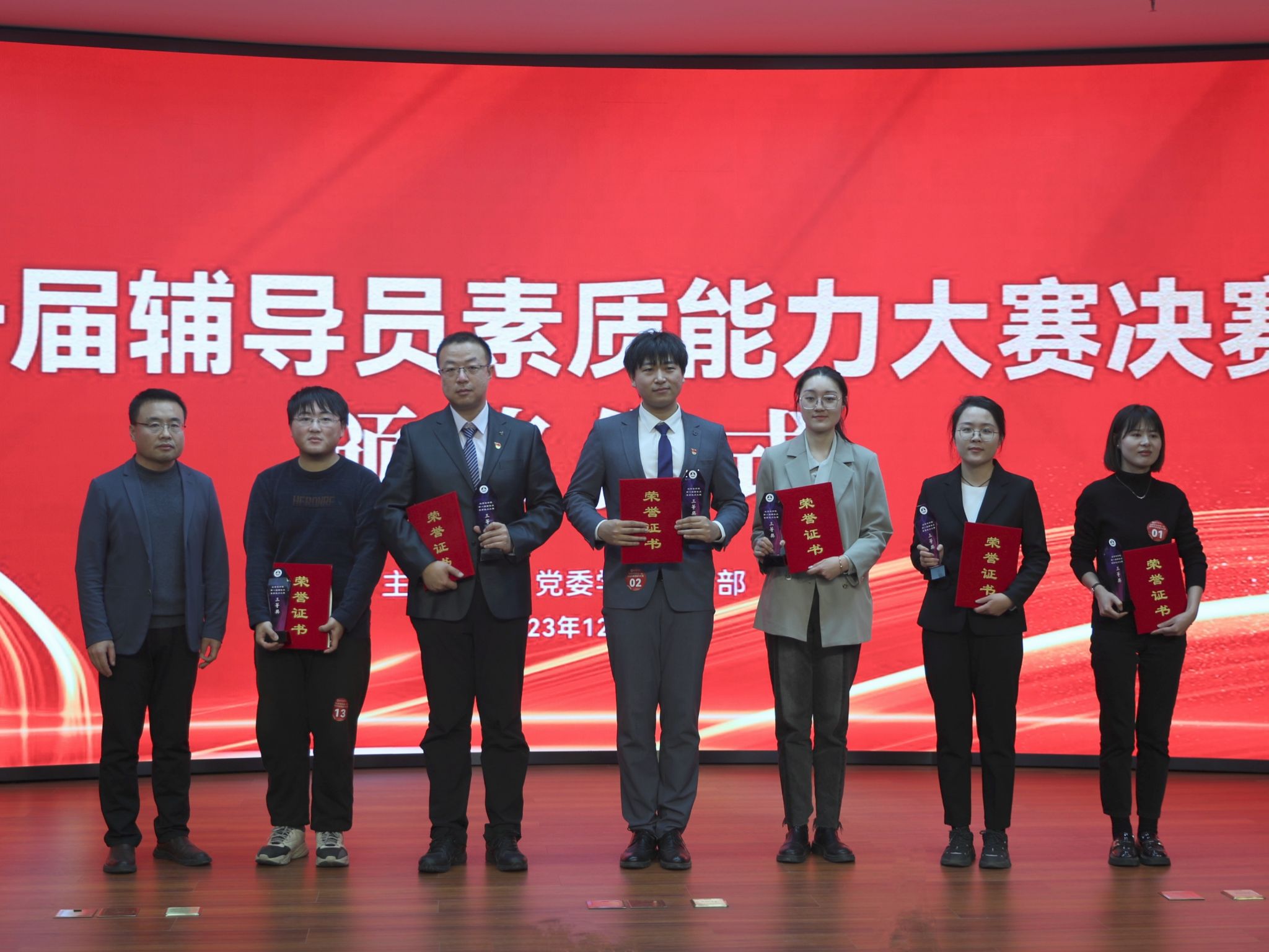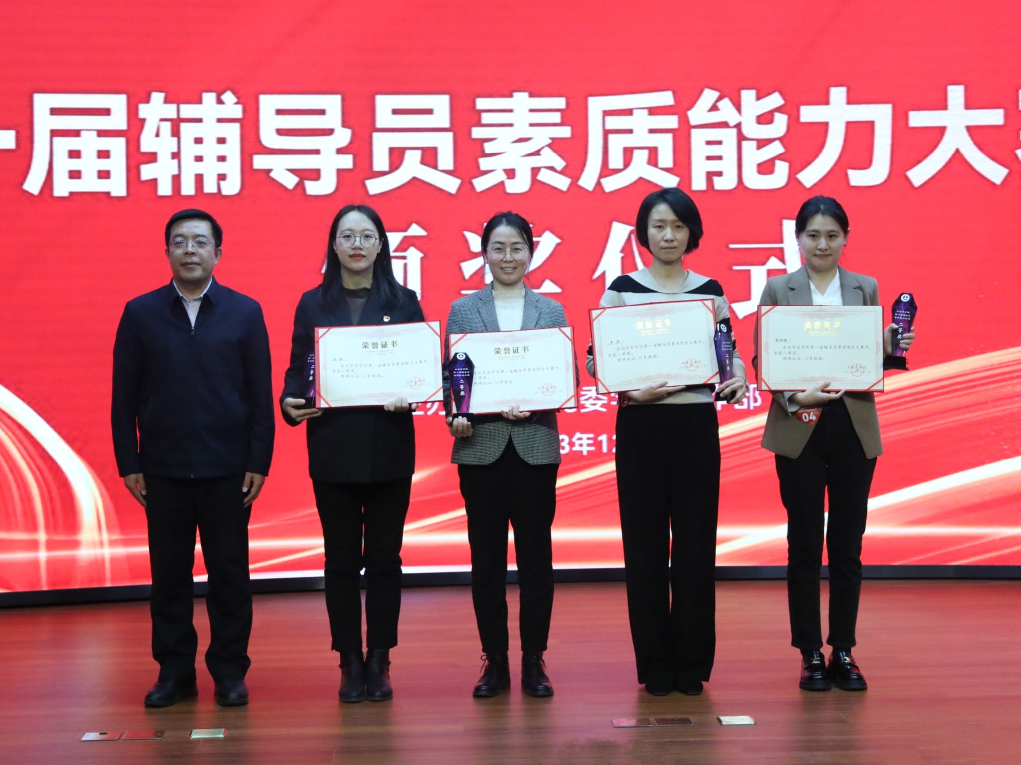 大赛根据四个赛段的综合得分,评选出一等奖2名、二等奖4名、三等奖6名、优秀奖8名。与会领导和专家评委为获奖辅导员分别颁奖。