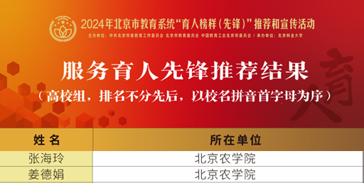 据悉,北京市教育系统“育人榜样(先锋)”推荐和宣传活动旨在加强北京教育系统师德师风建设和教职工职业道德建设,提高教师队伍职业道德修养,进一步做好教职工思想政治教育工作,引导广大教职工培育和践行社会主义核心价值观,增强职业自豪感和使命感,助力教职工职业良性发展。全市共评选产生“教书育人榜样”22名、“教书育人先锋”361名、“管理育人先锋”244名、“服务育人先锋”240名。