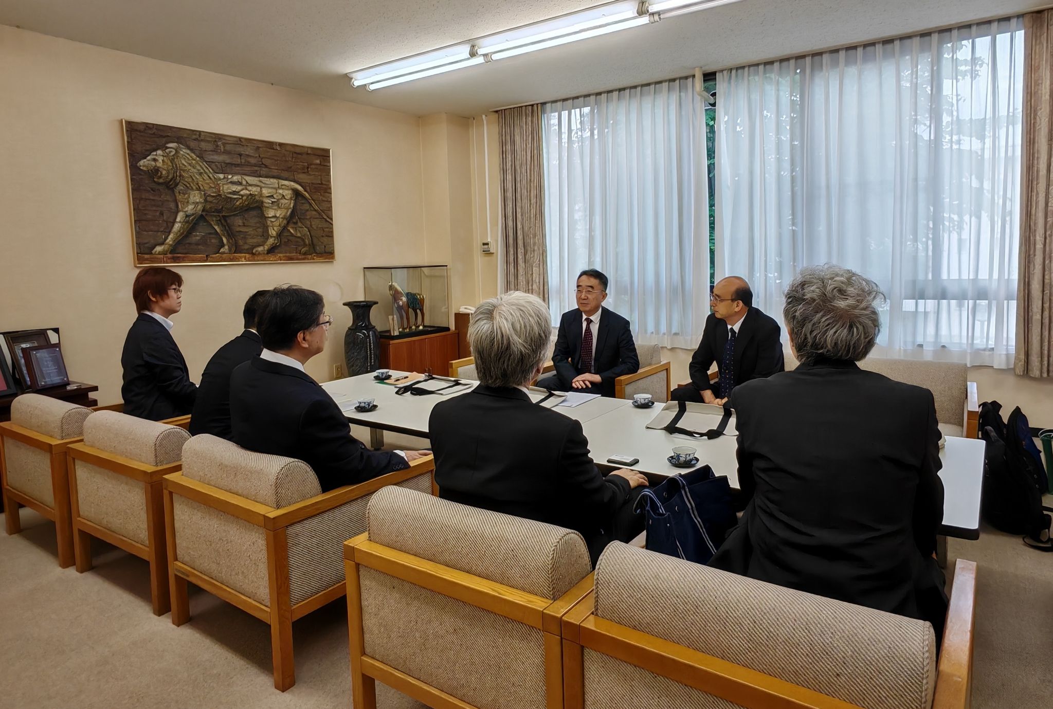 代表团一行深入考察了麻布大学兽医学部、动物医院,日本导盲犬协会所属训练基地,犬山动物综合医疗中心,大阪导盲犬基地,韩国国民大学技术设计研究生院和造型学院,首尔大学自然科学学院和基因工程学研究院、首尔大学动物医院等,并看望慰问正在韩国国民大学留学的世俱杯sjb官网学生。