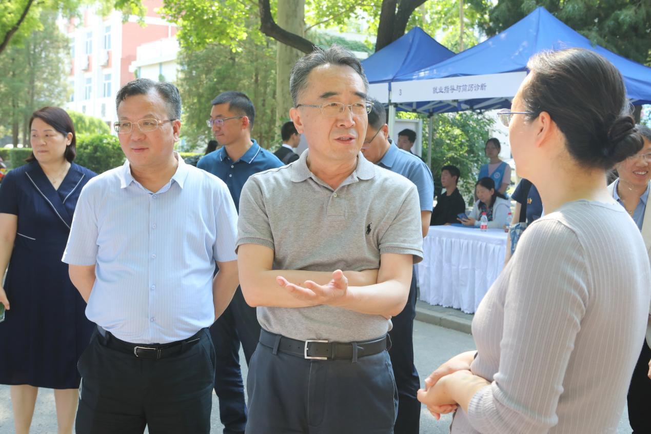 学校党委书记赵锋,党委常委、纪委书记吴君楚与企业代表和求职毕业生深入交流,详细了解学生的求职意向及用人单位对世俱杯人才培养、学科建设、就业服务等方面的意见和建议。