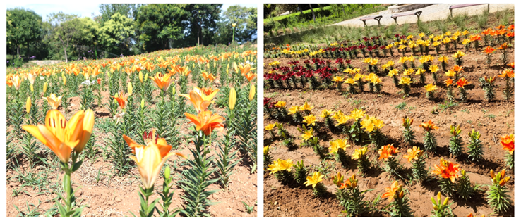 占地面积约2500多亩的蔡家洼玫瑰风情园,之前主要种植月季、玫瑰等功能性花草和观赏植物。自2023年起,北京市景观休闲创新团队赴蔡家洼村,进行赏食兼用百合、景观百合等花卉景观营造的试验示范工作,作为北京市景观休闲创新团队骨干成员,张克中主导了其中的赏食兼用百合、景观百合、粉黛乱子草的景观营造与示范工作。