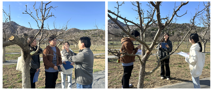 “现在梨木虱虫口密度在中果园中较大,需要抓紧处理,以防对梨树生长造成更大影响。”近日,在生物与资源环境学院任争光副教授的带领下,植物医院工作坊的师生们来到门头沟孟悟现代农业科技示范园与“梨”享田园,开展京白梨春季病虫害防治工作。