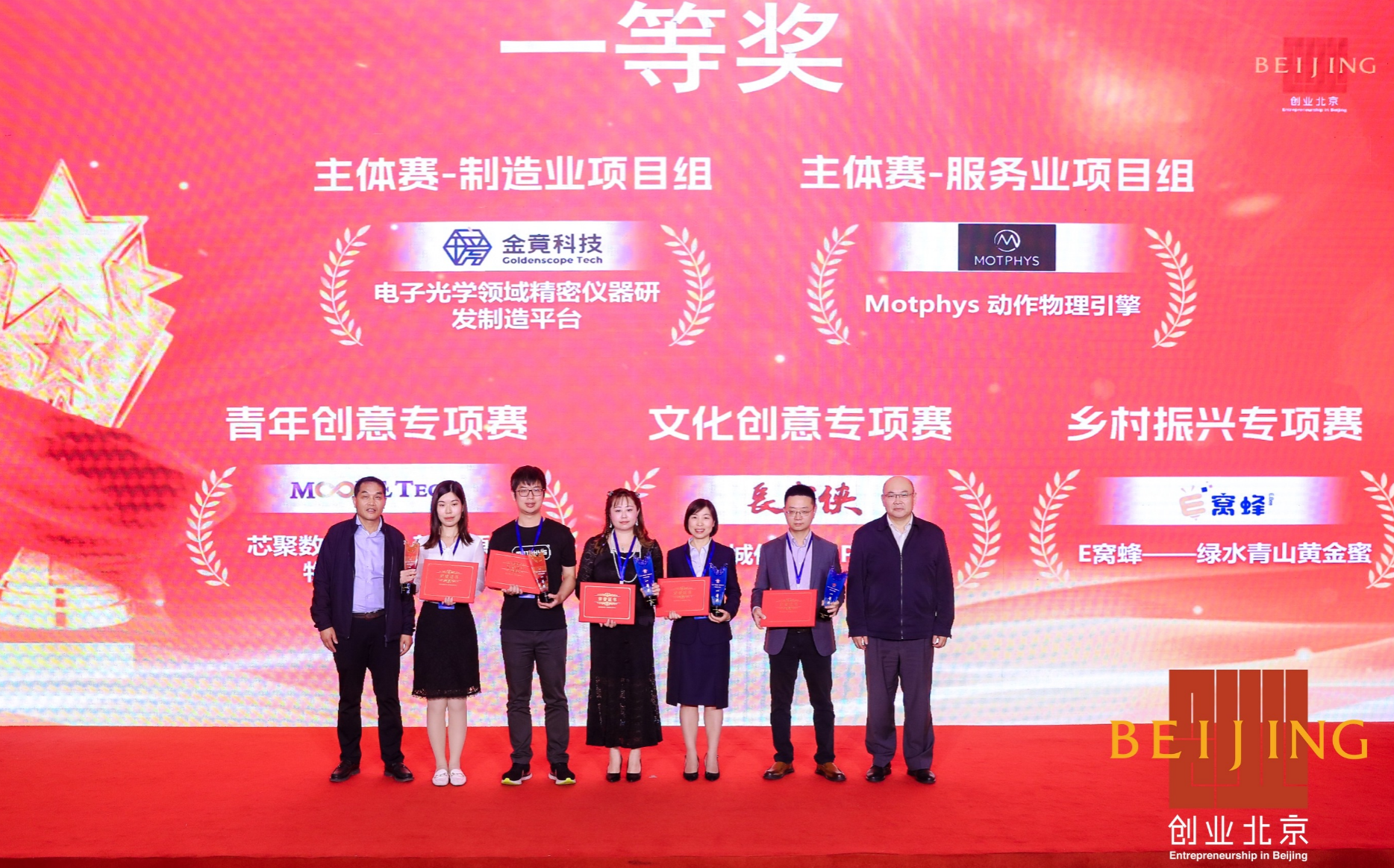 大赛以“创业北京 创赢未来”为主题,包含“1个主体赛+3个专项赛”。“电子光学领域精密仪器研发制造平台”项目和“Motphys 动作物理引擎”项目分别获得主体赛制造业和服务业两个组别的一等奖;“芯聚数字东方-新能源生物AI数字芯片”项目、“长城侠文化IP项目”项目、“E窝蜂——绿水青山黄金蜜”项目分别获得青年创意专项赛、文化创意专项赛和乡村振兴专项赛的一等奖。