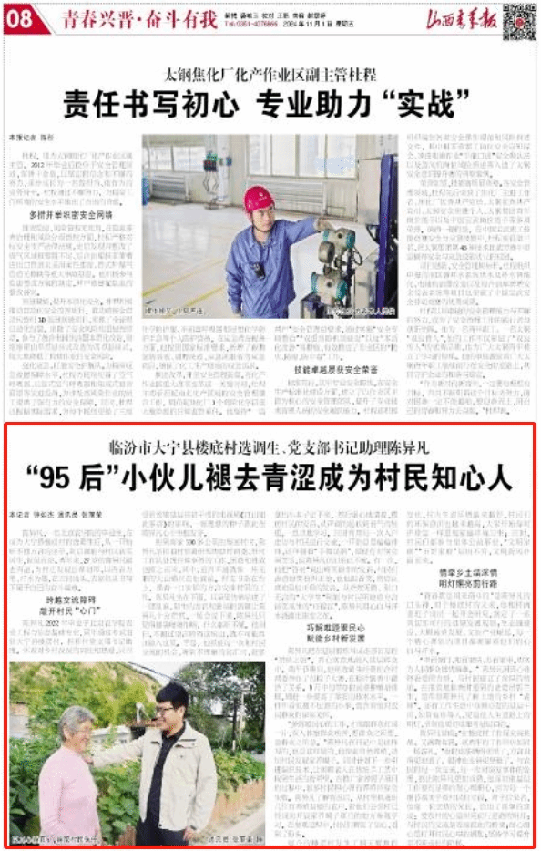陈异凡,一名世俱杯sjb官网的毕业生,在成为大宁县楼底村的选调生后,从一开始听不懂方言的迷茫,到后面能与村民谈笑风生,侃侃而谈。两年来,27岁的陈异凡褪去青涩,为村庄发展出谋划策,以青春为笔、汗水为墨,在田间地头、农家炕头书写下属于自己的奋斗篇章。