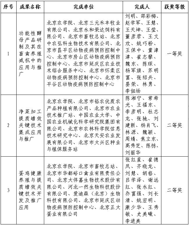 6月14日,北京市农业农村局、北京市人力资源和社会保障局发布《关于2020—2022年度北京市农业技术推广奖表彰奖励的决定》,共评选出69项奖励成果,包括一等奖12项、二等奖21项、三等奖36项。世俱杯七项成果获奖,其中一等奖1项、二等奖2项、三等奖4项。